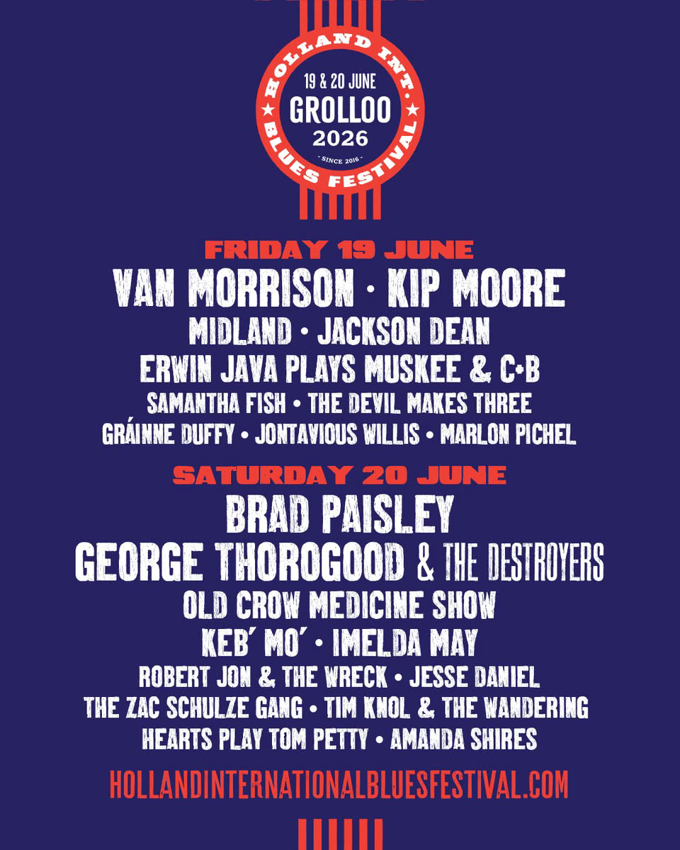 Het programma van het Holland International Blues Festival 2026 is rond. Met plezier en trots presenteren we de laatste namen: Jackson Dean, Old Crow Medicine Show, Imelda May, GrĂ¡inne Duffy, Jontavious Willis, Jesse Daniel, The Zac Schulze Gang en Amanda Shires. Op vrijdag 19 juni opent Erwin Java het festival met een eerbetoon aan Harry Muskee en Cuby+Blizzards.